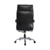 High back Executive chair consisting of cushioned seat & back, cushioned chrome plated metal arm rest, gas-lift mechanism, tilt mechanism, chrome plated metal base and nylon wheels. Chair duly upholstered in Black leatherette tapestry.