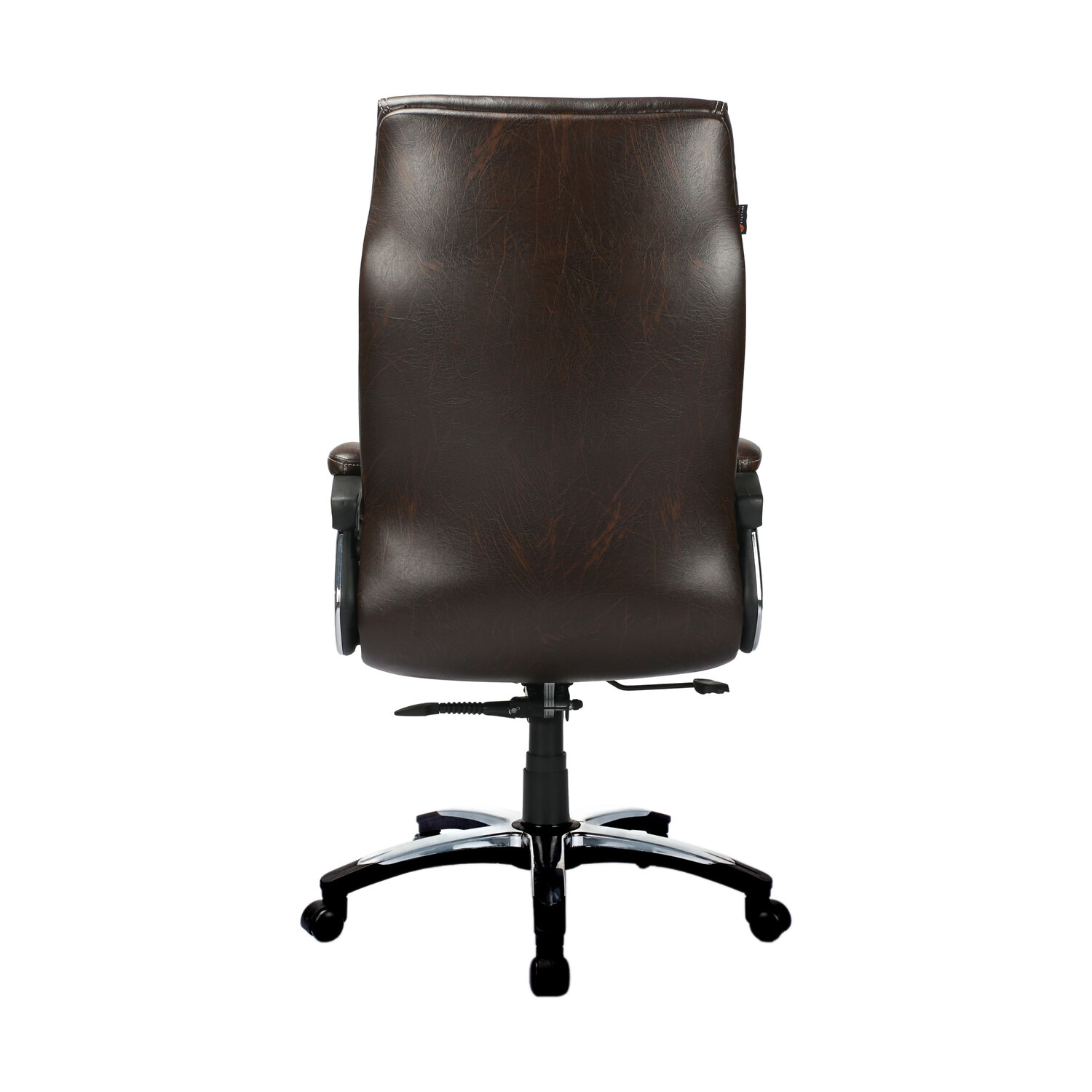 High back Executive chair consisting of cushioned seat & back, cushioned nylon arm rest, gas-lift mechanism, tilt mechanism, nylon base and nylon wheels. Chair duly upholstered in Brown (Double Shade) leatherette tapestry.